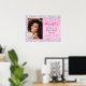 Lindo, glamoroso e feminino pôster de boas-vindas de festa de aniversário de 16 anos com a foto dela, confetes holográficos cintilantes roxos, rosa e prata ao longo das bordas contra um fundo rosa e o nome dela em uma fonte moderna cinza suave.