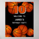 Este poster de festa de aniversário de boas-vindas do tema basquete é totalmente personalizável e apresenta bolas de basquete organizadas aleatoriamente nas bordas superior e inferior do poster - personalize sua mensagem personalizada e a idade da criança, ou personalize o texto para se adequar ao seu evento - por katz_d_zynes