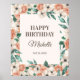 Linda placa de "Parabéns Feliz Aniversário", cor-de-rosa e branca, floral e folhas verdes, festa de aniversário de "Feliz Aniversário". Entre em contato conosco para obter ajuda com a personalização ou para solicitar produtos correspondentes.