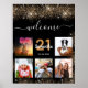 Uma conselho bem-vinda para uma festa de aniversário de 21 ruas (ou qualquer idade), celebrando sua vida com uma colagem de 5 de suas fotos. Personalize e adicione um nome, 21 anos e uma data. Data de nascimento ou data da festa. Letras brancas e ouros coloridas. Fundo elegante de aspecto negro, decorado com poeira brilhante de ouro falso escuro.