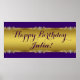 Cartaz de banner de festa de aniversário roxo e dourado elegante. Este lindo banner de aniversário roxo e dourado é facilmente personalizado para o seu evento, basta adicionar o seu texto no estilo de fonte, tamanho e cor de sua escolha. Você também pode alterar a cor do fundo para qualquer tonalidade que precise.