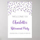 Poster de festa de aposentadoria de texto personalizado com confete prateado e roxo.