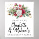 Belas rosas vermelhas e brancas estão aninhadas em azevinho verde e bagas vermelhas. Enfeites de Natal redondos vermelhos e brancos adicionam um toque festivo. Confetes salpicados de dourado adicionam um toque luxuoso. Este sinal de compromisso faz parte de uma coleção que permite criar convites e decorações de festa únicos.