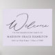 Sinal de graduação elegante com "Bem-vindo" em um roteiro preto de caligrafia moderna com um fundo roxo lavanda (ou cor de sua escolha). Personalize o poster de graduação moderno adicionando o nome do formando, o nome da escola e o ano de graduação. O sinal de formatura lavanda é perfeito para formandos de segundo grau e universitários.