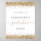 A Trendy Dourada Festa de formatura de boas-vindas. Script elegante com baloiços e bordas de falso brilho para este design de manhã.