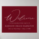Sinal de graduação elegante com "Bem-vindo" em um roteiro branco de caligrafia moderna com fundo burgundy (ou cor de sua escolha). Personalize o poster de graduação moderno adicionando o nome do formando, o nome da escola e o ano de graduação. O cartaz de formatura é perfeito para formandos segundos graus e universitários.