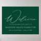 Sinal de graduação elegante com "Bem-vindo" em um roteiro branco de caligrafia moderna com um fundo verde (ou cor de sua escolha). Personalize o poster de graduação moderno adicionando o nome do formando, o nome da escola e o ano de graduação. O sinal verde de graduação é perfeito para formandos segundos graus e universitários.