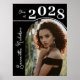 Uma poster moderna de festa de formatura de fotos em arco apresenta seu ano de graduação em uma fonte ousada e seu nome em um roteiro cursivo em um fundo preto.