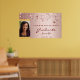 Para uma festa de formatura. Um fundo rosa de gradiente dourado com estrelas caindo, pingando. Personalize e adicione sua própria foto do formando. Texto; Parabéns! O texto: Formando e o nome são escritos com um script de estilo moderno, escrito à mão.