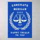 Banner de festa de formatura da faculdade de direito criativo com parabéns e felicitações fáceis de personalizar pelo seu formando de Direito favorito. Para personalizar o texto de edição para adicionar nome e ano.