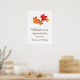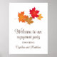 Cartaz de boas-vindas de festa de noivado de casamento elegante apresenta folhagem vibrante de outono em cores amarelo, dourado, laranja, cobre e vermelho. Personalize o texto marrom escuro com os nomes da noiva e do noivo.