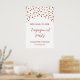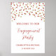 Poster de boas-vindas com festa de noivado de de texto personalizado com confete vermelho e dourado.