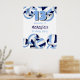 Esta poster de festa de aniversário de marinho tematizada de vôlei é totalmente personalizável e apresenta volichões claros, azuis e brancos, dispostos aleatoriamente, sobre os quais você pode personalizar sua mensagem personalizada e a idade da criança, ou personalizar o texto para se adequar ao seu evento - por katz_d_zynes