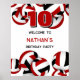 Esta poster de festa de aniversário de boas-vindas de tematizada de vôlei é totalmente personalizável e apresenta volichões vermelhos, pretos e brancos, em que você pode personalizar sua mensagem personalizada e a idade da criança, ou personalizar o texto para se adequar ao seu evento - por katz_d_zynes