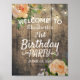 Feliz Aniversário do Partido Decor Boas-vindas Modelos Poster - Escrita Elegante com Flores de Rosas Brancas de Pêssego e Luzes de Cordas no Fundo Russo da Madeira. Um Design perfeito para o seu grande dia. Todo estilo de texto, cores, tamanhos podem ser modificados para ajustado das suas necessidades!