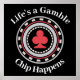 Adicione um toque de capricho à sua decoração e celebre a imprevisibilidade da vida com este poster de chip de pôquer, abraçando as aventuras da vida com um sorriso.