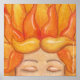 Uma menina de cabeça vermelha feroz com os olhos fechados é uma sonhadora feroz. O cabelo dela parece chamas. Design original de Christie Black of Creations do Coração.