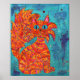 Pôster Fiery Cat em Turquoise