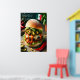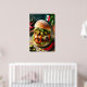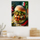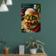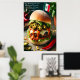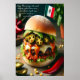 Ignora o seu paladar com este fedorento Físico Firecracker Burger. Um pedaço de carne picado, grelhado à perfeição, é tocado com queijo Oaxaca derretido, jalapeños torrados, um caldo generoso de maionese e fatias frescas de abacate. Todos aninhados de dentro a pãozinho. Uma pequena bandeira mexicana adiciona um toque festivo, enquanto um pano de fundo desfocado de pimentões-pimento-pimento e de cigarro fresco completa esta celebração culinária mexicana.