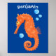 Este lindo cavalo marinho está cruzando nas correntes oceânicas. Desenhado no estilo de ilustração de desenho animado divertido.