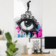 Esta obra de arte instigante em estilo grafite apresenta uma figura silhuetada em pé sobre um aglomerado de edifícios urbanos com um olho gigante, transmitindo temas de vigilância, isolamento e desafio. Os salpicos vibrantes de rosa e azul contrastam com o cenário monocromático, destacando a tensão entre a individualidade e as estruturas sociais. Ideal para aqueles que amam a arte urbana nas ruas com uma mensagem mais profunda, esta peça traz rebelião e design ousado para qualquer quarto.