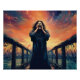 Pôster Figura emotiva gritando em uma ponte Sunset |