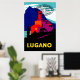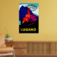 Poster vintage publicando uma exposição filatélica internacional realizada em Lugano Suiça, 1934.