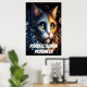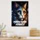 Uma pintura mesmerizante de um gato com olhos azuis em greve, olhando diretamente para o observador. O pelo dos gatos é representado em tons ricos, mostrando sua aparência elegante e real. Finalidade em curso