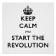 Hora de uma revolução, não diria? Um slogan divertido e oportuno "Fique Calmo e" que diz tudo.