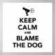 Mantenha calma e culpem o Cachorro. O melhor amigo do homem, especialmente quando você peidou, é sempre uma desculpa excelente para culpar o cachorro! No estilo do famoso Mantenha Calma e Carregue na poster. Um encanto retrô com uma reviravolta!