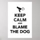 Mantenha calma e culpem o Cachorro. O melhor amigo do homem, especialmente quando você peidou, é sempre uma desculpa excelente para culpar o cachorro! No estilo do famoso Mantenha Calma e Carregue na poster. Um encanto retrô com uma torção malvada!