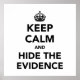 Fique Calmo E Esconda As Evidências. Baseado no vintage Keep Calm and Carry On poster, isso é ideal para qualquer um que seja um pouco malvado de vez em quando. Às vezes é melhor esconder a evidência e o carregar!