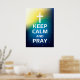 Poster motivacional. Fique calmo e reze. Espaço aberto, estilo céu estrelado. Impressão design. Fundo escuro