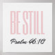 Um versículo das escrituras confortante, parafraseado com duas palavras: "Fique Calmo" do Salmo 46:10. Rosa e cinza. [Imagem de fundo branco texturizado do Freepik.com.] Ideal para um berçário, escritório ou qualquer lugar onde você queira relaxar.