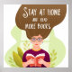 Um design com uma mulher dizendo para ficar em casa e ler mais livros. Esta design parece realmente eficaz nestes Poster
