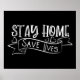 Este design apresenta uma mensagem para ficar em casa e ficar seguro.
