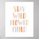 Poster Fique Selvagem Flor Criança Decoração de Quarto de