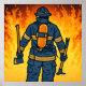 This poster features a striking illustration of a firefighter standing resolutely before towering flames.