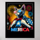 Poster Fireworks Patriotic Devon Rex Cat Merica