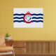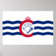 This design features the flag of Cincinnati, which is a major city in the U.S. state of Ohio and the government seat of Hamilton County. Cincinnati was settled in 1788, and the city is located at the northern side of the confluence of the Licking and Ohio rivers, the latter of which marks the state line with Kentucky. The city is the economic and cultural hub of the Cincinnati metropolitan area, one of the fastest growing economic centers in the Midwestern United States. The flag of Cincinnati includes the Latin motto "Juncta Juvant", which means "United, we help each other".