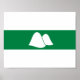 Poster with flag of Kurgan oblast (Kurganskaya oblast); flag with three vertical bands of white and green with illustration of two hills