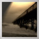 A unique view of the Flagler Beach pier in Florida. A beautiful black and white photograph with a light shining above the pier is unique and would look lovely hanging in your home or office.