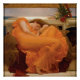 Junho flamejante de Frederic Leighton, o óleo na canvas 1895, é uma pintura de uma figura feminina em reposição, reclinando-se em um elegante interior de mármore, a luz natural do pôr do sol iluminando a cena numa gama de cores quentes e brilhantes como o ouro líquido. A elegante figura clássica e contornos lisos evocam as ninfas e figuras cortadas da escultura da Grécia clássica, enquanto a inclusão da tóxica planta Oleander acima faz lembrar romântica a ligação entre sono e morte. O flaming June é a pintura mais famosa do artista entre muitos que estão a recuperar o reconhecimento após um longo período de negligência da arte da era vitoriana.
