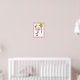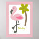 Este poster para o berçário mostra um flamingo rosa com palmeira e borda rosa. Personalize o nome em verde.