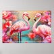 Poster Flamingos rosa em um lago com flores-20231