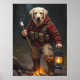O excelente ao ar livre ficou maior com o Comandante do Campo no comando! Este Labrador está pronto para qualquer coisa em calções de carga, botas, e uma camisa de flanela vermelha. Com um marshmallow assando em uma pata e uma lanterna brilhando na outra, ele está iluminando o acampamento — e o coração de todos. Seja liderando caminhadas ou guardando os salgadinhos, esta poster é perfeita para amantes de cães que acamparam como reis (com cães que governam o anel de fogo).