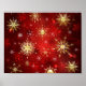 Poster Flocos de neve do Ouro de Natal em Fundo Vermelho