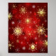 Poster Flocos de neve do Ouro de Natal em Fundo Vermelho