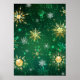 Poster Flocos de neve do Ouro Xmas em fundo verde