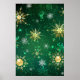 Poster Flocos de neve do Ouro Xmas em fundo verde